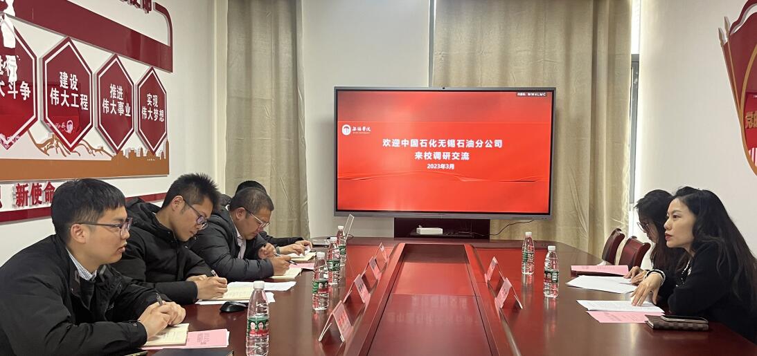 3月24日下午,中国石化销售股份有限公司江苏无锡石油分公司人力政工部负责人沈丹婷,党群纪检部负责人王春雨一行来校交流。我院党总支副书记王明杰、机械电子工程系主任蒋亮,辅导员左飞飞、胡开亮参加了此次座谈。