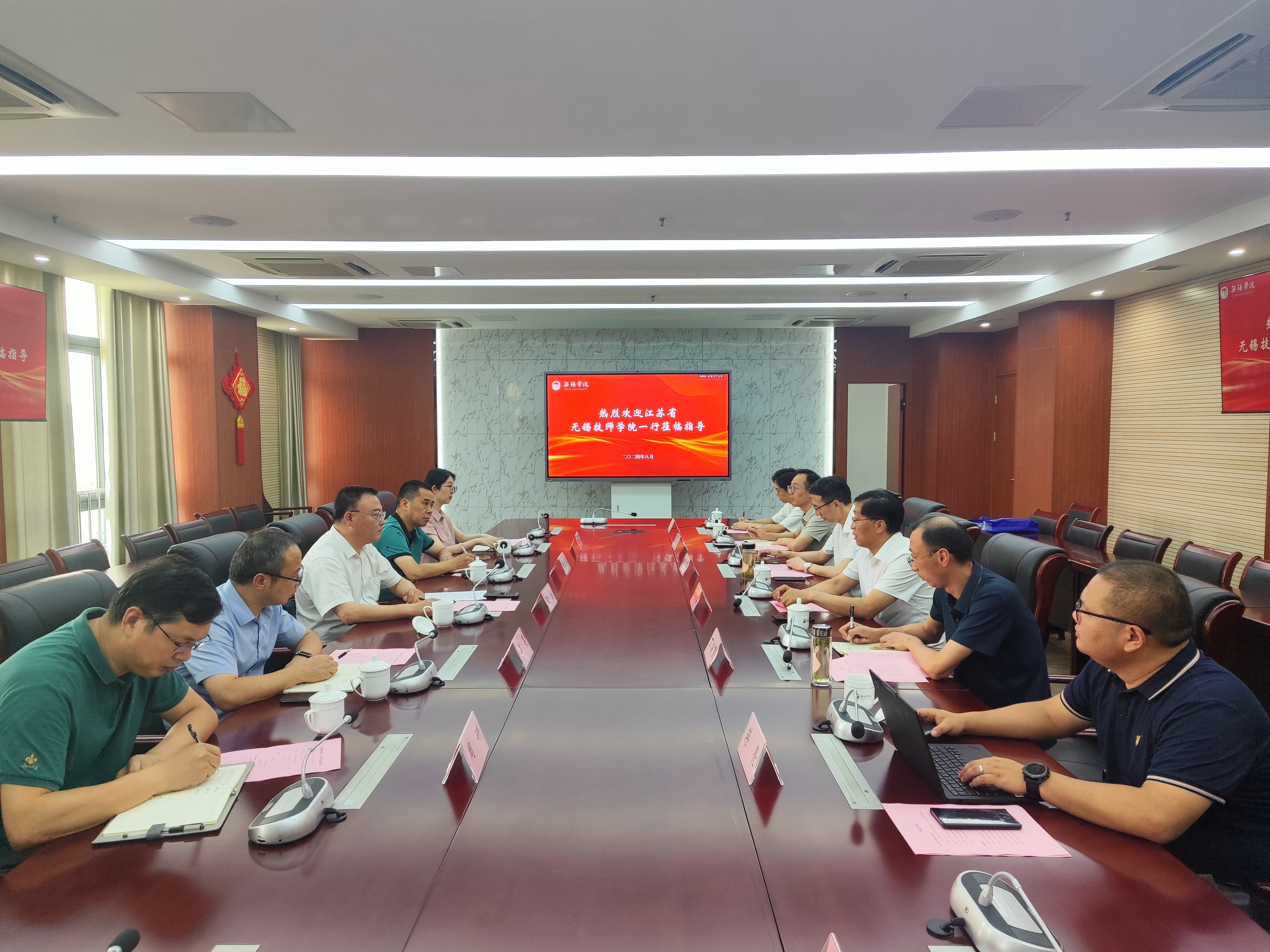 8月23日下午,无锡市人社局党委委员、副局长、江苏省无锡技师学院党委书记、院长沈挺率队来访我校。我校校长张永宏、副校长曹广喜出席会议。会议由曹广喜主持。