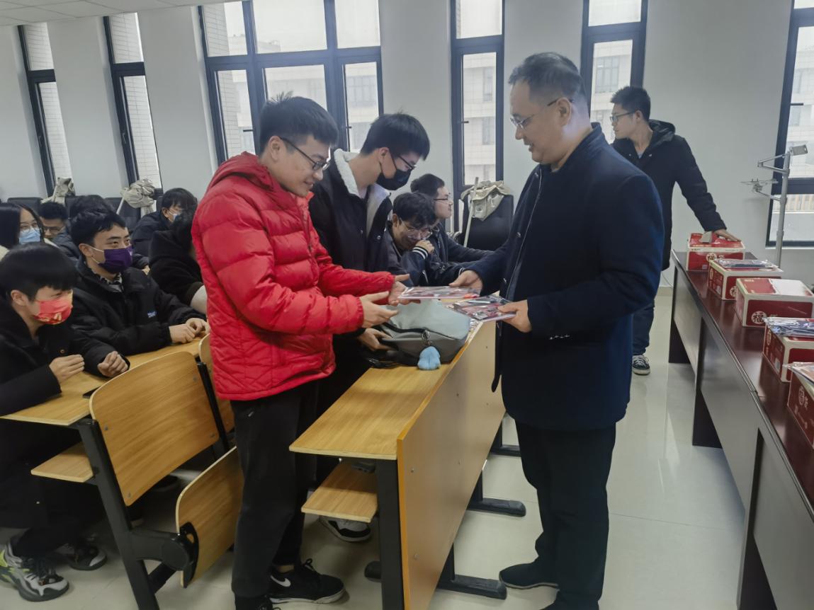 期间,李鹏勉励同学们全力拼搏,合理安排时间,坚定必胜信念,保持身体健康,祝福同学们在考研路上心想事成。王明杰希望同学们坚持到底,稳住心态,预祝同学们成功上岸。随后送上学院精心准备的“考研礼包”。