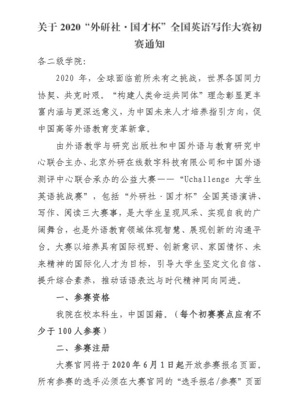 2020年年“外研社•国才杯”全国英语阅读大赛初赛通知