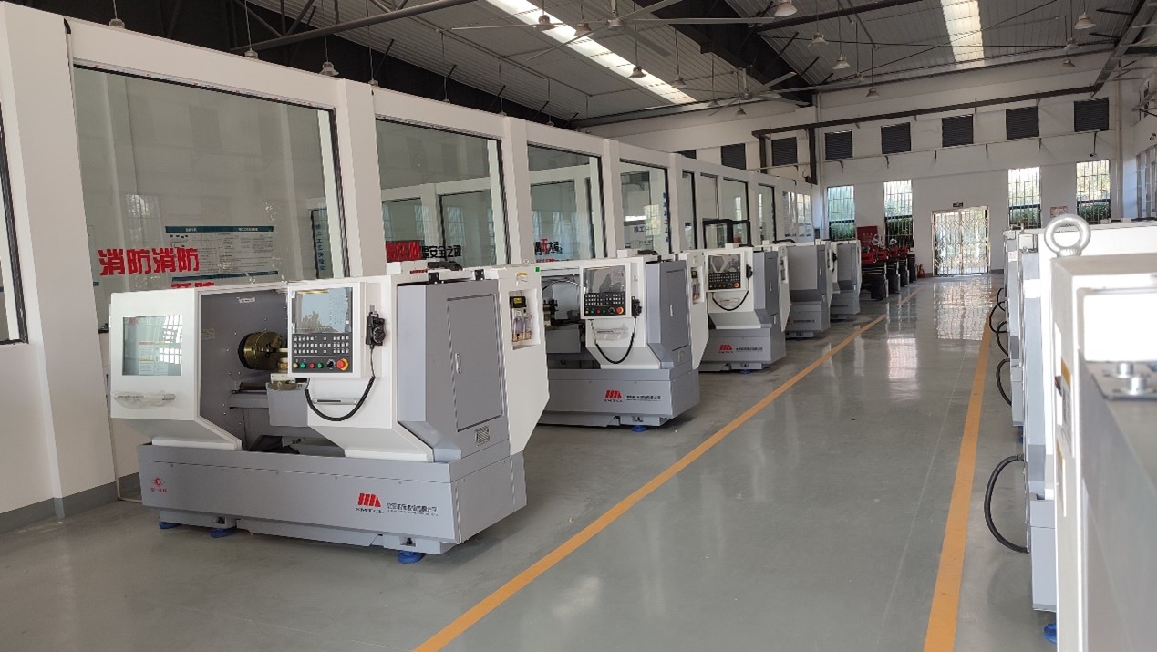 数控车床加工车间建设于现代制造中心,占地面积210平米,实验设备包括12台CAK4085数控卧式车床及其他辅助教学工具及设备。